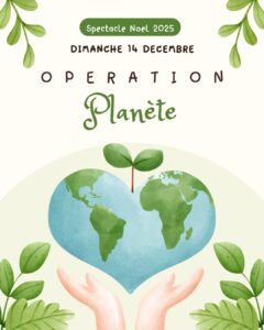 L’école organise le dimanche 14 décembre son spectacle de Noël « Opération Planète » à partir de 14h00.